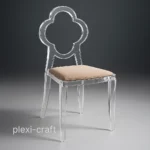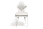We take the shapes and forms of acrylic very seriously at Plexi-craft, which is why the Clover Chair is one of our favorites. Coupling stylish acrylic legs with a unique and traditional symbolic back makes this chair perfect for a vanity table.