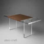 The Leather Wrap Slab Desk is the synthesis of clean-cut acrylic and luxurious leather. Designed by Coffinier Ku, the desk stands on two monumental legs that beam with incandescent luster. The top features a minimalist acrylic slab with an exceptional leather insert. The leather on this desk can be swapped out with your own choice of material. This desk is the perfect way to introduce acrylic into your home or workspace, offering density and individuality second to none.