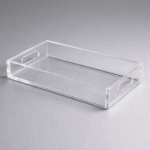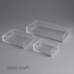 Each tray is built to order and can be customized in overall size, acrylic thickness, and handle design. Handle cutouts can be modified in shape, placement, and scale to suit your aesthetic or functional preference.